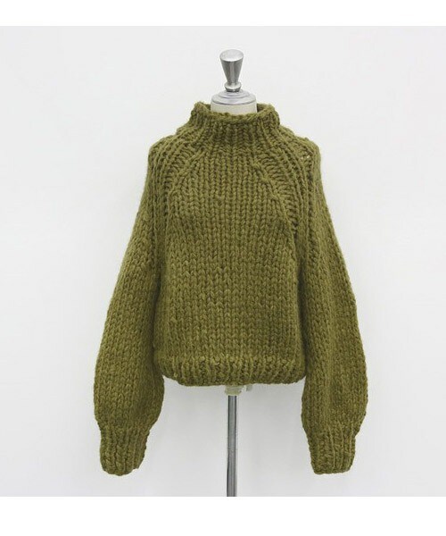 これからの季節のマストアイテムとしては1枚持っておきたいハイネック ニット。 ハイネックはタートルネックよりも首元が見えるので 華奢さをアピールでき、フェミニンな雰囲気を演出してくれます。 合わせるだけでトレンド感を出してくれるので1枚は持っておきたいお勧めアイテムです。 ラグランスリーブは適度な抜け感と女性らしい丸みのあるふんわりとしたシルエットを作ってくれます。 袖の小さいハンドメイド タグも可愛いポイント! シンプルなデザインは合わせやすく、デニムやボリュームのあるスカートなど、 合わせるボトムで雰囲気を変えてコーデできます。 程よいゆるシルエットでラフに着こなせ女性らしさを演出してくれます。 チクチクしないニット素材なので首元などノンストレスで、窮屈感のない着心地!
