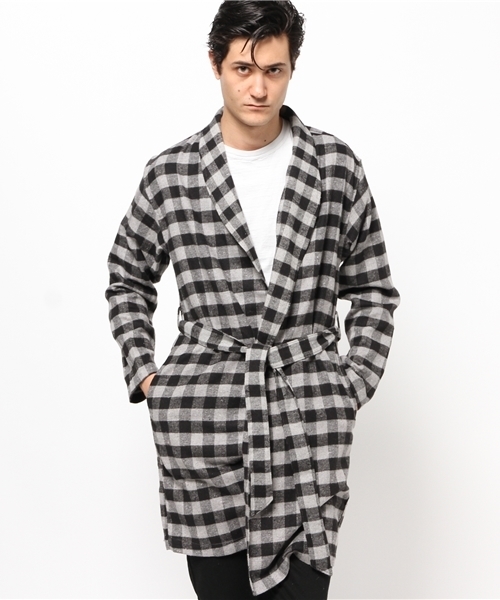 起毛感のあるネル素材を使用したチェックガウンコート。モノトーンカラーのブロックチェックと、グリーンタータンチェック、ネイビー系のタータンチェックの3パターン展開です。両脇にポケット付きで実用的です。サラリと軽く羽織って恰好良くて着こなして!