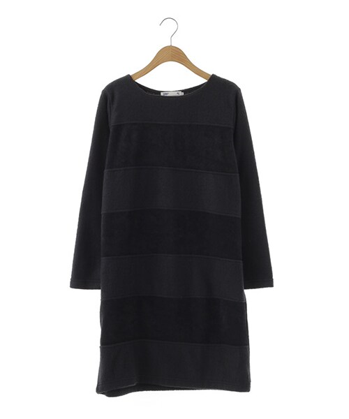 裏起毛×パイル地のボーダー切り替えワンピース。表側と裏側を使用している個性的な一着。ゆったりとしたサイズ感でリラックスしてご着用いただけます。定番のブラック、コンサバティブなネイビー、トレンドのキャメルの3色展開です。