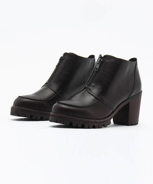 mystic(ミスティック) レースアップの代わりにジップで留めた外羽根がアクセントのブーティーです。チャンキーなヒールやアウトドア調の靴底でタフさをミックスした、ボリュームルックが魅力になっています。スカートコーデの外しに、ショートボトムスとのコーディネートにと幅広く投入できる1足です。
