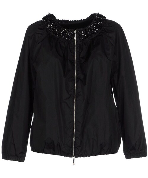MONCLER Jackets. techno fabric, logo detail, contrasting applications, solid color, round collar, single-breasted, zip, multipockets, pocket with zipper, long sleeves, lined interior, outerwear. 100% Polyamide