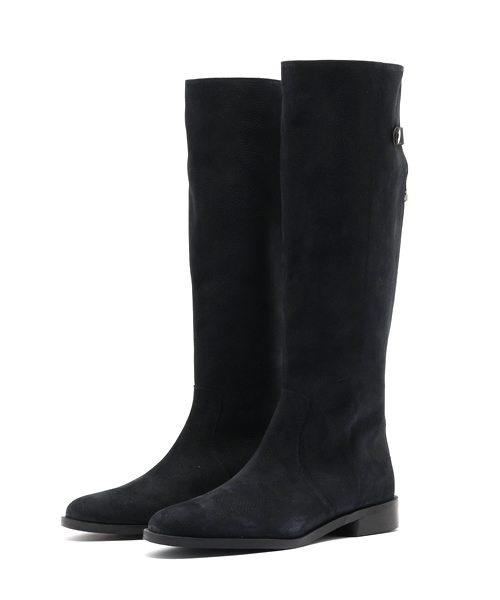 シンプルで無駄のないスッキリとしたフォルムに、バックのジップが印象的なジョッキーブーツ。<br>後ろ姿にも抜かりはありません。<br>柔らかな革を使用しているので、履けば履くほど足に馴染んでくれます。<br>ブラック:スムースレザー<br>ネイビー:ヌバックレザー<br>※こちらの商品は、ファスナーの裏にあるあて革がソフトレザーのため、多少のあたりがでてキズが発生する場合がございます。