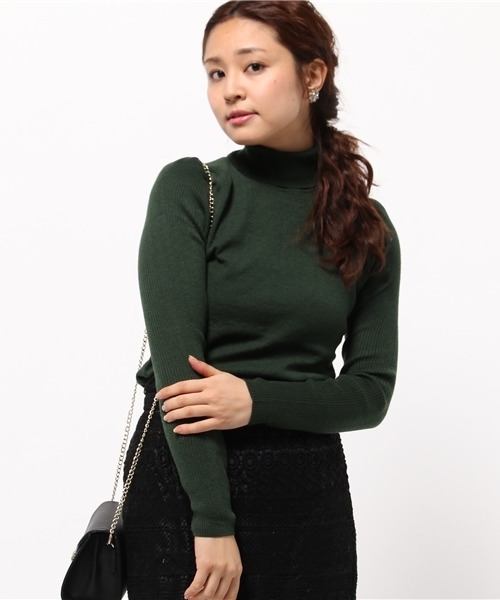 肩に少しボリュームのあるシンプルなタートルネックニットシンプルなニットなので色違いでもそろえたい