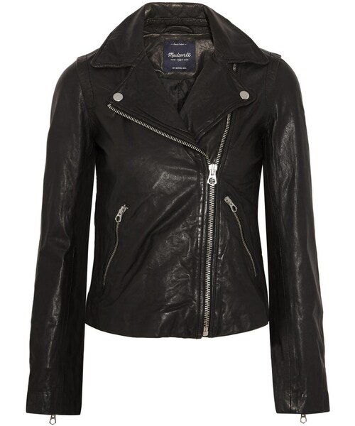 Madewell Leather biker jacket, Modeled after classic biker styles, Madewell's black jacket is a cool piece with timeless appeal. It's cut from supple leather and designed with authentic details like a snap-fastening collar and zipped cuffs. Slip it on to give any outfit an edgy finish Size: S. Gender: Female. Age Group: Adult.