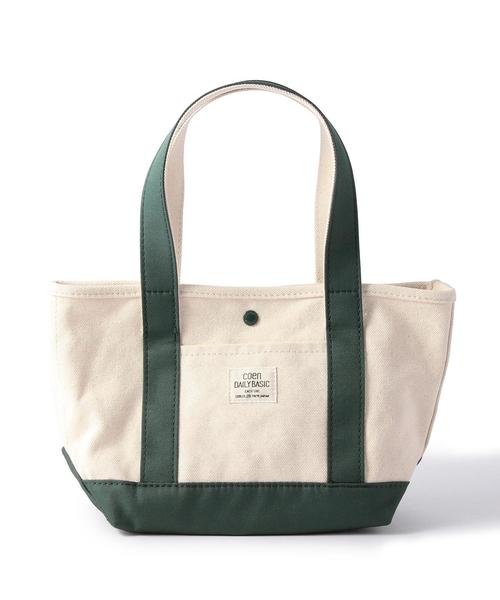 coen定番人気シリーズ「デイリートートバッグ」の新バージョンが登場♪しっかりとしたコットンキャンバス地で仕上げたcoen定番人気のミニトートバッグ。ちょっとしたお出掛けやランチトートとしてなど、コンパクトなサイジングながら使い勝手抜群のアイテムです。長目にデザインされた持ち手で肩掛けもOK♪シンプルなデザインでオン・オフ問わず幅広いシーンで活躍します。※実店舗と発売時期が異なることがございます。あらかじめ御了承下さい。店舗にお問い合わせの際は、全国のコーエン各店まで下記の品番をお申し付け下さい。品名:B NEW DAILY TOTE S 品番:7681-603-6002