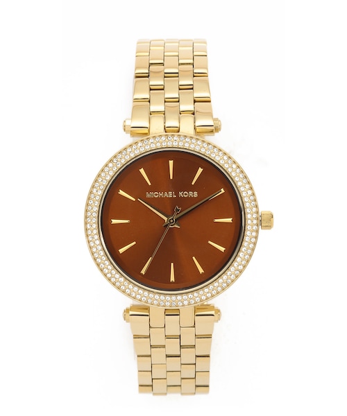 A slim link band and pavé crystal bezel give this Michael Kors watch a refined, ladylike look. Narrow markers at metallic dial. Hinged-snap clasp. Water resistant to 50 meters. 2-year manufacturer warranty. Imported, China. Measurements Dial: 1.25in / 3.3cm Band: 0.5in / 1.25cm Diameter: 2.5in / 6.5cm A manufacturer's warranty for this item can be requested from Customer Service.