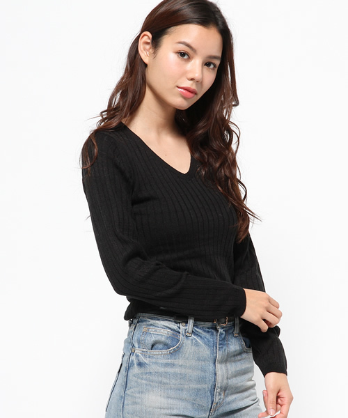 この秋冬にはこんなクラシカルでスタンダードなデザインが欠かせない。繊細なリブで全方位したベーシックなVネックトップスです。様々な着回しを楽しめます。
