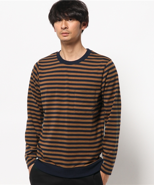 カジュアルの定番、ボーダー長袖Tシャツです。パーカーやカーディガンのインナーシャツとしても活躍してくれます。襟や裾の配色リブがアクセントになっています。胸ポケットがポイントです。色違いで持っていたい、ベーシックなアイテムです。