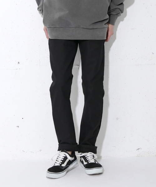 スタンダードで着回し力のある、オールマイティーな1本 年間を通してご着用頂ける。ソリッドデニムパンツの登場です。 ジーンズの原点に立ち返り、再度構築しなおしたコットン100%を使用した珠玉の一本 フロント部分はジップアップではなく、クラシカルなボタンフライを採用。 裾へ掛けてテーパードがかかっており、着用を続けることで 足に程よく馴染んでゆく使い勝手の良い1本です。