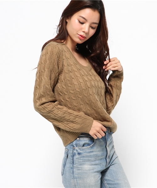 秋冬の定番アイテムとして欠かせないケーブル編みニット。ニットならではのほっこり感と、豊かな表情を見せるケーブル編みの愛らしさが◎。カジュアルにもフェミニンにも、どんなボトムともあわせやすいベーシック&シンプルデザインで着まわし力もバツグン!