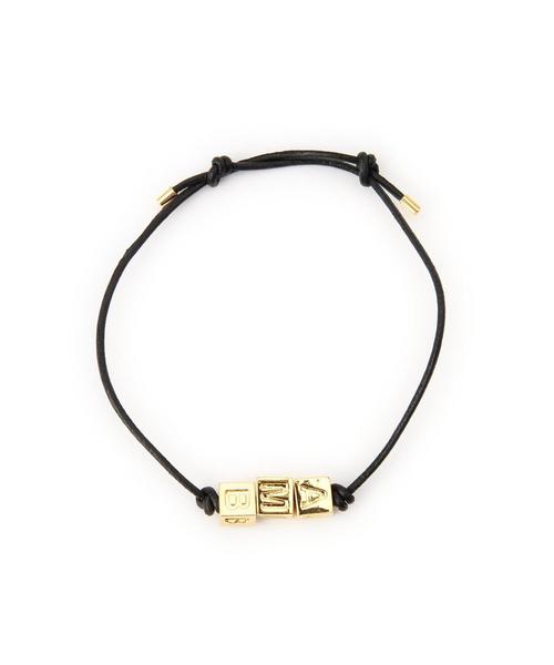 「A」「M」「B」の文字を刻印した3つのキューブが並ぶモダンなブレスレット。 適度にボリュームがあり、手首が細く女性らしく見えるのも特長です。 コード使いはスタイリッシュで大人っぽさを演出。 結び目をずらすことでサイズ調整も可能です。 店舗にお問い合わせの際は、下記の品名/品番をお申し付け下さい。 品名:AMBUSH 33 LOGO BRACE 1 品番:1378-599-2570