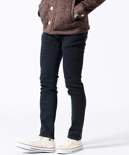 スッキリシルエットが魅力のスキニーデニム! テーパードの効いたシルエットが絶妙なスキニーデニムです。ジャケットやシャツ、あわせるトップスを問わない汎用性の高さと、レザーシューズからスニーカーまで足元を選ばない抜群の対応力。まさに一本は押さえておきたいパンツです。