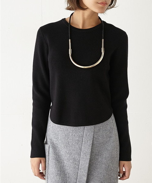 どんなアウターとも合わせやすく、インナーとしても使い易いサイズ感とシルエットなので、ポイントとなるように前身と後身のRIB幅を変えています。 アウトして着ると綺麗なラウンドの裾に♪