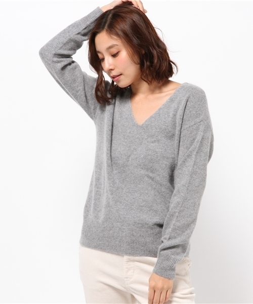 【DouDou】 フェレット素材を使用した、とても軽く、抜群の着心地のVネックシルエットのニットトップスです。 Vネックシルエットも、鎖骨をすっきりとキレイにみせてくれるので、小顔効果もあり、シャープな印象を与えます。 ベーシックな、ブラックとグレーに加え、DouDouらしさを演出してくれるラベンダーカラーと、上品なネイビーの4色展開です。