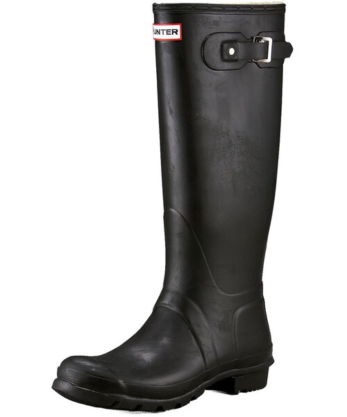 Hunter Boot Original Tall Rain Boot Details The classic tall rain boot features a raw rubber look that's ready for everyday wear. Black rubber. Decorative silver buckle on side. Hunter logo on center top. Quick-dry knit lining. 1 1/4" stacked heel. Multilayered cushioned sponge insole. Calendered rubber sole. Approximately 16"H. Pull-on style. Imported. Care & Designer Please note: Every Hunter rubber wellington boot is made from 100% natural ingredients and small amounts of wax are included in