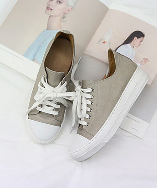 天然リアル牛革仕様のスニーカーが登場。 つま先のラバーが、シンプルながらも存在感のあるスタイリッシュなデザインに。 スポーティーなイメージでトレンド感もたっぷり。 大人のコーディネートにもばっちりハマるスニーカーは、今季注目のマストアイテム。 ソフトな履き心地で長時間履いても疲れにくく、毎日のオシャレを演出してくれる一足です。 シーズンレスで長く使える、ややハイカットのデザインは、毎日のコーデに取り入れやすいのも魅力。 ※手作りのため、ご注文から10日前後お時間いただきます。予めご了承ください。