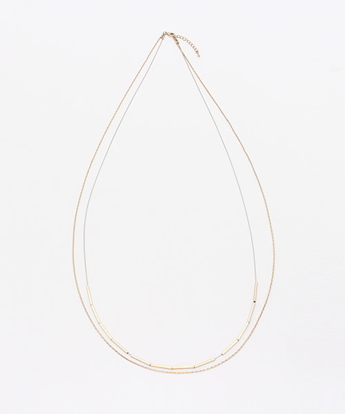 ★胸元を華やかに★長めの作りでつけた時の存在感が抜群のネックレス。ふたつのネックレスを重ね付けしたようなデザインが特徴で、胸元を華やかな印象にしてくれます。