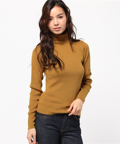 ベーシックなリブタートルニットトップス。レイヤードスタイルにも使えるシンプルアイテム。