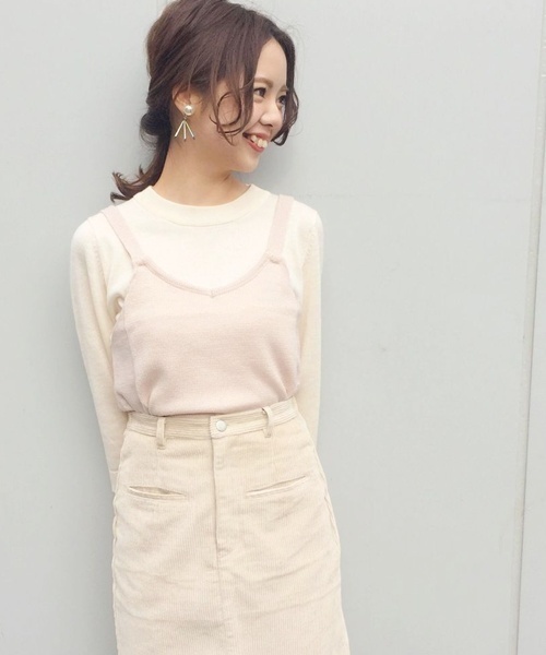 Kastane(カスタネ) ハイゲージ編みの少し大人なニットキャミの登場♪春からもレイヤードコーデを楽しんで頂けます。同カラーのボトムと合わせてセットアップで合わせてこなれ感もプラス♪持っておくと便利なアイテムです。