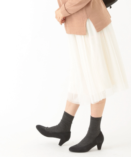 ●○おとなかわいいミモレ丈チュールスカート○● ミモレ丈のチュールスカート。これ一枚でガーリーなスタイリングが完成!スポーティなアイテムを加えて、ちょっとヌケ感のあるコーディネートがおすすめです。ウエストはゴム仕様で着脱もスムーズ。トップスをインするのも可能です。アイボリー、カーキ、グレー、ダークネイビーの4色展開です。 ぺチコート付き(ペチコートは本体から取り外し不可です。)