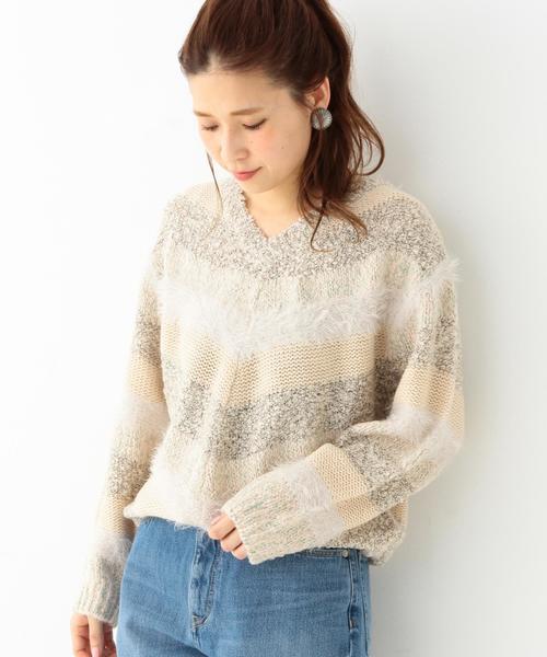異素材ミックス配色Vネックプルオーバー☆ 異なる素材と編み地を組み合わせた存在感大のニット。 毛足の長いふわふわとした素材やループ状の編地にミックスカラーなどを合わせた、こだわりの詰まった一枚です。 Vのラインがスッキリとした印象で、また淡い同系色の配色にする事で柔らかい雰囲気を生み出します。 袖をやや長めにふんわりとさせた女の子らしいシルエットもポイントです。 ※着用、お取り扱いの際は商品についておりますアテンションタグ、洗濯ネームを必ずご確認ください。 店舗にお問い合わせの際は、全国のAnother Edition店舗まで 下記の品名/品番をお申し付け下さい。 品名:AEFC イソザイMIXハイショク VPO 品番:56131991302