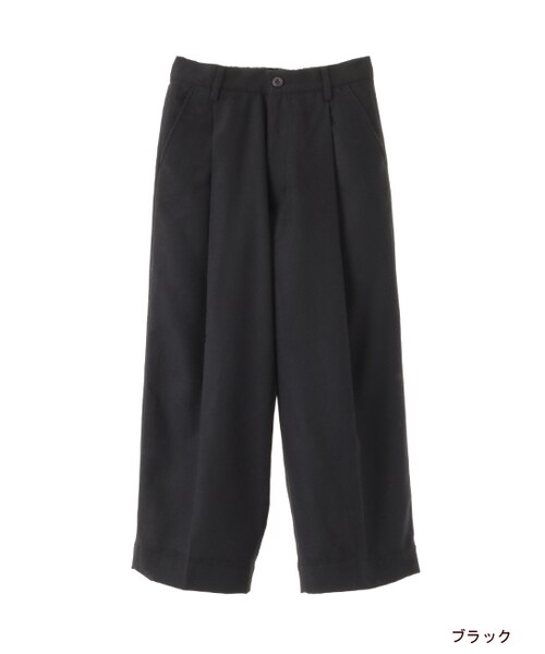 タックとセンタープレス入りですっきりして見える8分丈のクロップドタックワイドパンツ。柔らかくあたたかい生地と総裏地付きなので保温効果もあり冬にぴったりなパンツです。今年らしくニットベストやハイネックトップスとのコーデが◎。※後ろウエストはゴムが入ります。