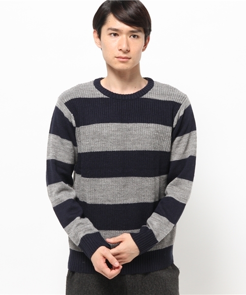 究極のベーシックアイテムとして、定番だけれども裏切らないボーダー柄のプルオーバー。ワイドピッチのボーダーは、それだけで存在感があり手抜き感なく着こなせます。 身頃は畦編み、袖はハイゲージと編地の変化にも注目したい。