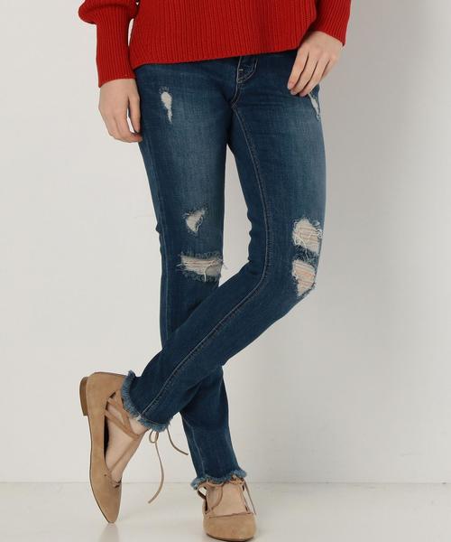 インディゴダメージスキニー☆ ダメージ加工でハードな雰囲気に仕上げたスキニーパンツ。 切りっぱなしのような裾にフリンジをプラスする事で、定番のスキニーパンツも一気にトレンド感のある一枚に変化します。 足のラインにキレイにフィットするので、脚長効果も◎。 この冬はボリュームのあるニットに合わせたメリハリのあるスタイリングがおすすめです。 ★ATTENTION:INDIGO(藍)染め製品ですので、他の衣服等に付着する事があります。また洗濯により徐々に染料が色あせいたしますので取り扱いには品質表示を確認の上ご注意下さい。 ※着用、お取り扱いの際は商品についておりますアテンションタグ、洗濯ネームを必ずご確認ください。 店舗にお問い合わせの際は、全国のAnother Edition店舗まで 下記の品名/品番をお申し付け下さい。 品名:AEMBC INDIGO DAMAGE SKNY 品番:56146992103