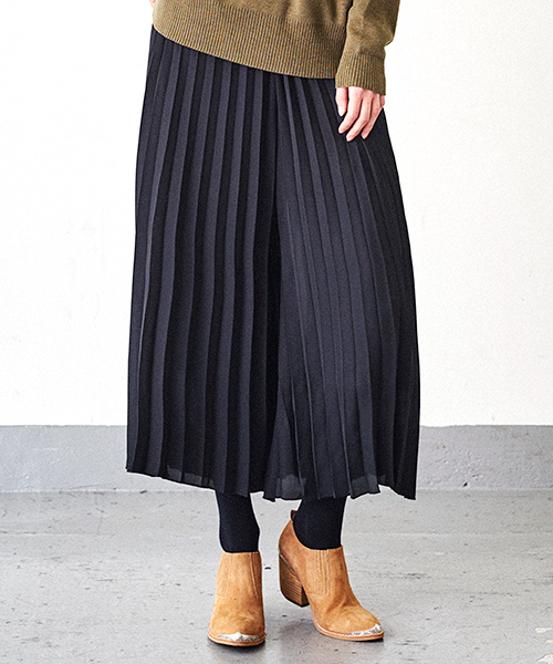 Omekashi(オメカシ) ワイドシルエットに仕上げた、まるでスカートのようなシフォンプリーツパンツです。動く度に踊る揺れ感が軽やかでいてエレガント。お腹周りをすっきりと見せるV字切り替えも要チェック。シンプルなワントーンコーデも素敵に仕上がる、フェミニン一辺倒では終わらない鮮度抜群のアイテムです。