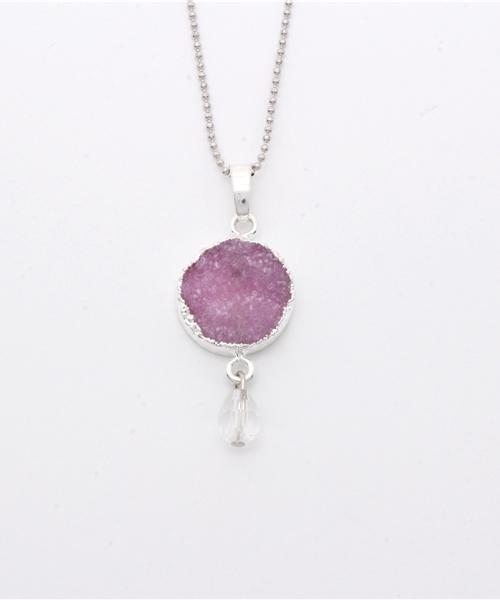 クリスタルの細かな結晶が集まったドゥルージーネックレス。光にあたると石の表面がキラキラと高級感のある輝きを放ちます★クリスタルを1点1点、綺麗なカラーに染め上げました☆★ 【ドゥルージー】 天然石の母石や結晶の表面に小さな結晶部分が現れた状態のこと。 長い月日を経て、自然の中で出来上がる神秘的な天然石です。 【クリスタル】 幸運・浄化・才能開花 / 全てを浄化し、幸運を招くとされるオールマイティーなパワーストーン。 ※こちらの商品は、1点1点職人による手作りとなります。また天然素材を使用しております為、石の形や色合いなど若干異なる場合がございます。あらかじめご了承ください。 Amina Collection Co.,LTD.