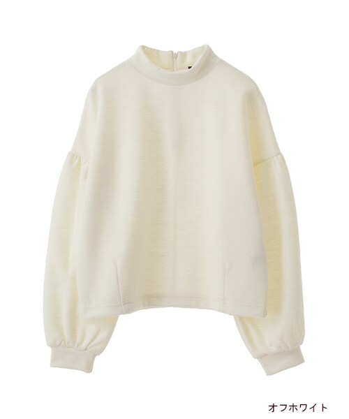 ハリ感のある厚手のニットソープルオーバー。しわや毛玉になりにくいので取り扱いしやすいです。トレンドのハイネックに袖ギャザーのデザインが可愛いです。ドロップショルダーなので甘くなりすぎないところも◎。後ろ身頃にコンシールファスナーがついているので着脱もしやすいです。柄のボトムとのコーデに映える1枚です。