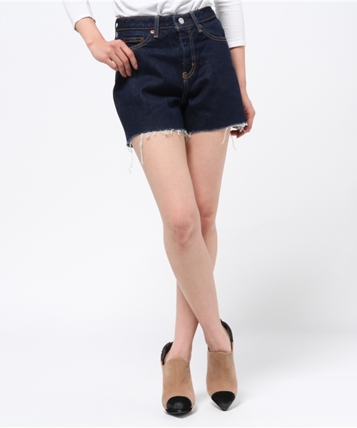 軽くロールアップしても穿ける、少し股下長めの穿きやすい型のショートパンツ。腰周りもややゆとりのある作り。ボリュームニットやショートブーツに合わせて。 ※当商品はライトブルーのみ後ろ左ポケットが無い仕様となっております。ご了承ください。