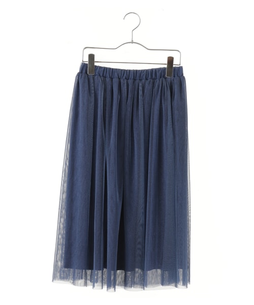 ボリューミーなチュールスカートをデニムのようなインディゴカラーで仕上げています。ソックス&ショートブーツとの相性が抜群!ウエストはゴム仕様で着脱も楽々。ミモレ丈の大人かわいい丈感が魅力の一枚です。