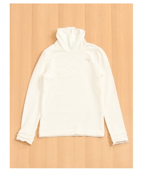 なめらかな肌ざわり&伸縮性のあるモダール生地が、抜群の着心地を叶えるTシャツ。ちょこんとしたハイネックで、クラシカルに仕上げました。パイピングされた袖口や胸元のリボンモチーフが、愛らしいアクセントに。