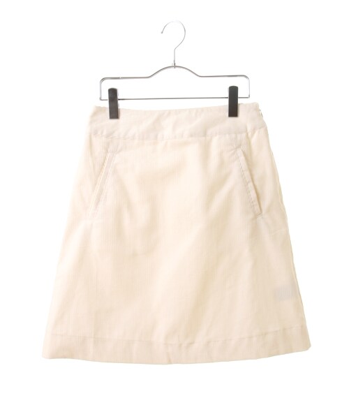 コールテン(コーデュロイ)素材台形ひざ丈スカート。柔らかいコーデュロイ素材で秋冬らしく暖かみのある生地感です。ほどよく広がる台形シルエットがガーリーテイストのあるスカートです。ウエスト後ろのみ平ゴムを使用し、フロント部分はスッキリ。インするスタイリングも可能です。