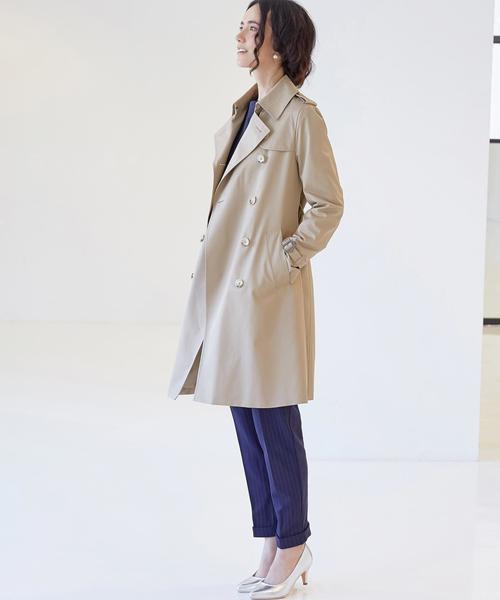 ◆定番トレンチコートの新作をご紹介◆ 毎シーズン欠かせない上質トレンチコートの新作がいよいよ登場です! 高密度でも軽さが特徴のギャバジン素材で仕立てた、クラシカルな雰囲気が魅力♪ 今回はシルエットにこだわり、バストや腕周りがすっきり見えるようにバランスよく仕上げました。 また 甘くなりすぎない、自然で美的なAラインに。 とても軽い着心地の万能トレンチコートは、デイリーや通勤用として春先に重宝すること間違いなしです。 ※こちらはリバーシブル仕様のライナー付き(起毛素材&ストライプ素材)になります。 ※別品番になりますが、同型でライナーなしタイプも展開しております。 ※こちらは店舗限定サイズ拡大商品(34サイズ/42サイズ/44サイズ)です。 店舗にお問い合わせの際は、全国のグリーンレーベル リラクシング各店まで下記の品番をお申し付け下さい。 品番:3525-151-0461 ※照明の関係により、実際よりもやや明るく見える場合がございます。またパソコンなどの環境により、若干製品と画像のカラーが異なる場合もございます。予めご了承ください。