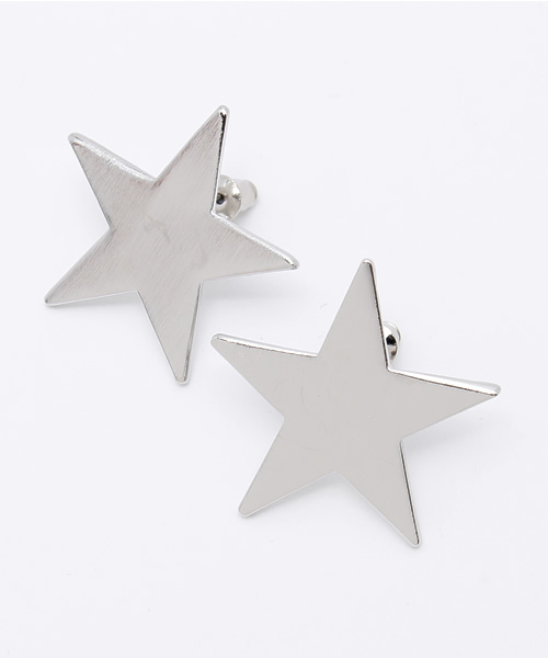 ■スターモチーフピアス■ スター型のピアスです。光沢のあるシルバーカラーで仕上げたクールな印象のデザイン。シンプルなのでどんなコーディネートにもあわせやすく、カジュアルなスタイルから、ドレスアップシーンにもマッチ。小ぶりなので重ね付もおすすめ。