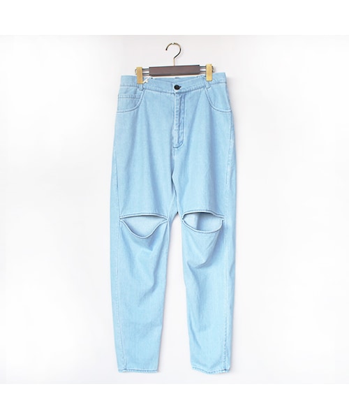 69(sixty nine)より、冬を彩るスポットアイテムがリリース。こちらは、膝部分に大胆なスリットが落とし込まれた、見た目にもインパクトのある個性的なデザインが光るデニムパンツ。使用しているデニムは69のアイコンにもなっているオリジナルデニム。デニムとは思えないほどの、しなやかで滑らかな質感が特徴であり魅力の生地を、ブランド誕生の地でもある地元LAの工場で丁寧に作られた逸品です。全体的に比較的ジャストなサイジングで仕上げられており、裾に向かって細くなるテーパードシルエットを搭載した、ブランドとしても新鮮なアプローチを感じる表情もポイント。ウエスト周りにはベルトループのほかゴムも搭載されているので、ブランドのコンセプトでもある「性別問わず全ての人が着用できる」アイテムとなっています。メンズモデル身長:179cm 着用サイズ:M/L