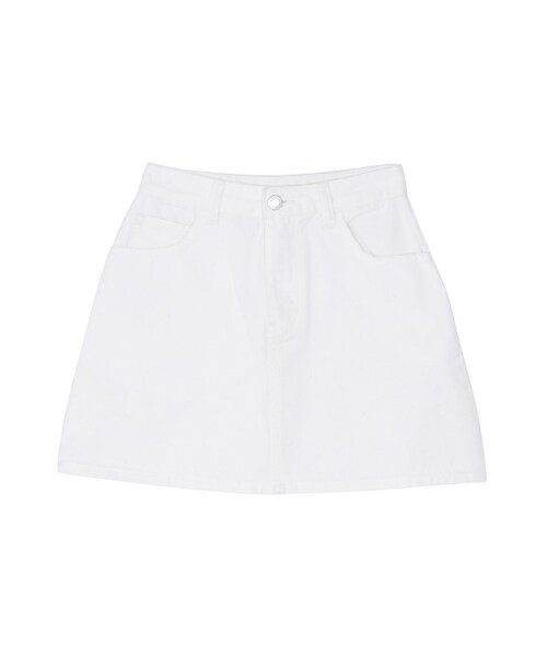 EVRIS定番のデニムミニスカートです。台形シルエットでスタイルアップ効果も。同素材を使用したデニムGジャンと合わせたコーディネートがオススメ。