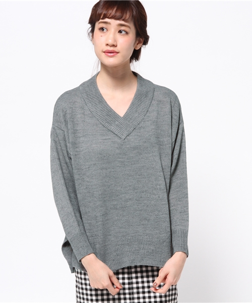 ●○ゆるシルエットVネックニット○●太めリブのゆるVネックニットプルオーバーです。アクリル/ウール素材で柔らかく着やすいのもポイント。ドロップショルダー&ドルマン風なシルエットが女の子らしいアイテムです。トレンドのガウチョや太めシルエットのパンツとの相性も抜群!広く開いたVネックもデコルテをキレイに見せてくれます。