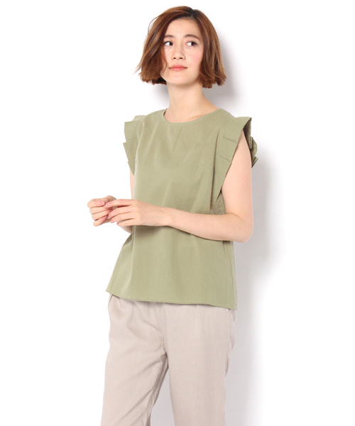 Discoat Parisien(ディスコートパリシアン) ◇フリルよろも甘さ控えめな折り紙タック◇ 折り紙のように直線的な袖タックをあしらった甘さ控えめな1枚です。フリルのようなボリューム感は無くとも、タックの集合がミニマルながらもデザインポイントに。ハリ感と清涼感たっぷりでこの春夏のワードローブにも外せないアイテムです。ニュアンスカラーのカラバリも女性らしいポイントに。
