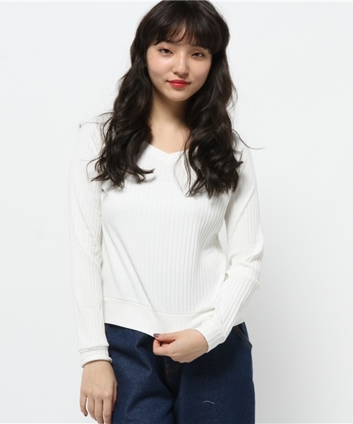 who's who Chico(フーズフーチコ) 少し太めのリブ素材がポイントのカットソー。 ぐっと女性らしい雰囲気をアップさせるVネックラインが大人な女性を演出してくれます。 タイトすぎないシルエットに合わせて、伸縮性のある素材を使用しており、 オフィスカジュアルなどオンオフ兼用でお使い頂ける予感。