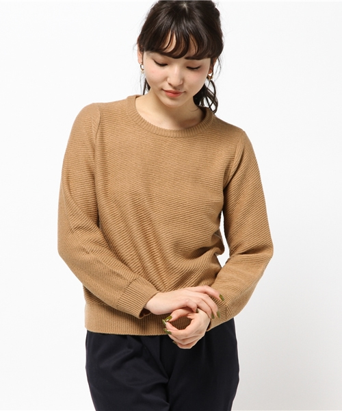 Discoat Parisien(ディスコートパリシアン) 斜めに走る編み目が個性的なニットプルオーバーです。体に程良くフィットするシルエットが印象的。短め丈で足長効果抜群、スタイル良く見せてくれます。一枚でさらっと着ても素敵ですが、シャツをインして差し色にすると一層キュート。チェックのシャツや柄ものシャツと合わせるのがオススメ。