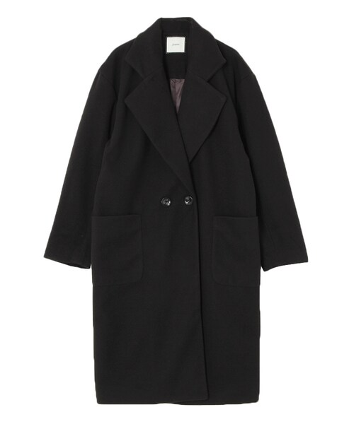 ジュエティらしい少しドロップショルダーのラインはトレンドのコート。スタンダードなデザインなのでいつもと違う色に挑戦するのもおすすめで、ピンクは特に人気カラーです。デニムやスカートどんなスタイリングにもマッチする調度良いロング丈です。