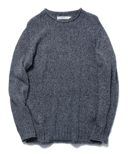 長めの幅広リブが特徴的なコットンアクリルのサマーニット。 独特な風合いとロールさせた首元・袖口・裾が、生地感と相まってこなれた雰囲気に。 霜降りの織感は涼しげな印象で、カットソー感覚でさらりと着るのもオススメ。 3シーズン着用出来るユースフルな1枚です。