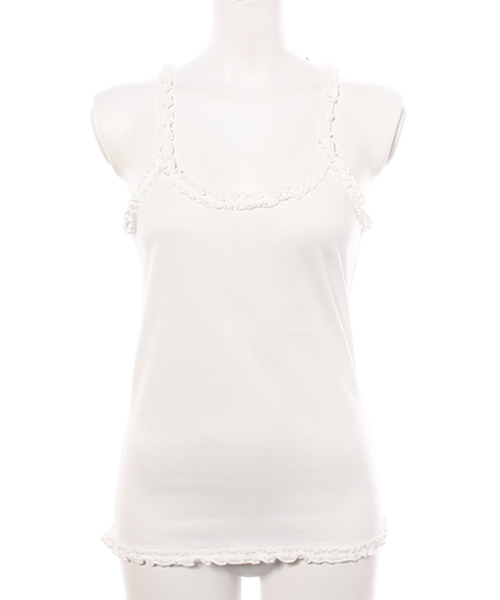 【ZOZOTOWN限定価格です】※2016年の商品です。フリル幅が細めなのでさりげなく取り入れられ、甘すぎるのが苦手な方にもオススメです。春先の首元が開いたお洋服にも合わせるだけでワンポイントに♪裾にもフリルが付いているので短めのトップスに合わせても◎。
