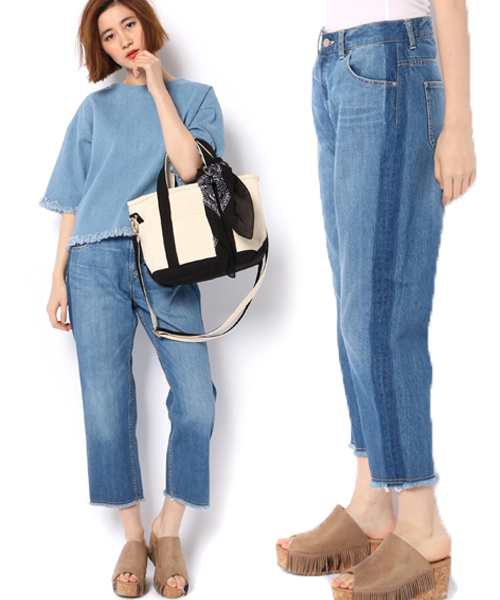 Discoat Parisien(ディスコートパリシアン) インディゴの濃淡でサイドにラインをあしらったちょっぴりメンズライクなアイテム。ゆるめのシルエットでリラックス感を、裾にミニフリンジをあしらいさり気にポイントにしました。春夏シーンのサンダルコーデのアクセント付けにもぴったり。 ※この製品はダメージ加工により、1点1点微妙に表情が異なっております。予めご了承のうえお求め下さい。