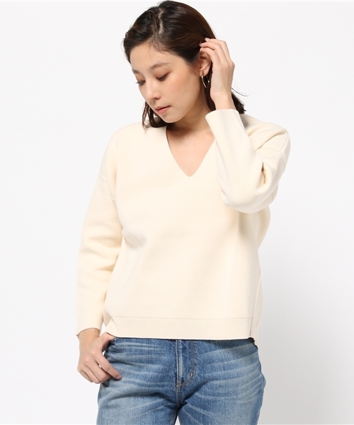 ふっくらとしつつもハリのある独特な生地感が可愛いデザインニット。肩を落としたリラックス感のあるシルエットが柔らかな雰囲気をプラスしてくれます!シンプルながらも存在感のある1枚。