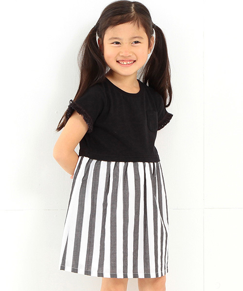柔らかなコットン100%のカットソーと布帛をドッキングさせたワンピース。カットソーにはポケットと袖のフリルを配し、可愛いアクセントをプラスしました♪ スカートには春夏らしい爽やかなカラーのブルーとイエロー、洗練させたブラックのストライプを組み合わせました。シンプルに可愛いデザインとキュートな配色で、デイリーからお出かけまで幅広く着用可能♪今シーズンは、旬なミリタリージャケットと合わせた、甘辛MIXコーデがイチオシスタイルです! ※画像の商品はサンプルです。