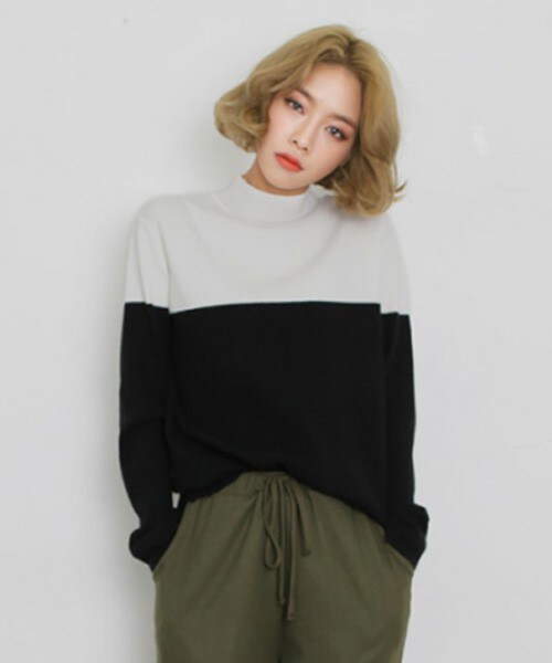 モックネックでトレンド感のあるニットのプルオーバーです。バイカラーでパキッとした色感がおしゃれ。 ※WEARに記載してある金額と、DHOLIC通販サイトに記載してある金額にシステム都合上、稀に誤差が生じます。正しい金額はDHOLIC通販サイトに記載された金額です。